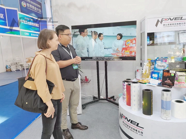 在世界奶業(yè)全產業(yè)鏈展會上,富有“徽文化”特色展區(qū),王長春副總率永新股份團隊沉浸式、全方位地向海內外嘉賓,宣傳推介了公司自主研發(fā)生產的乳制品包裝、防偽包裝、雙腔紙塑包裝、單一材質可回收“零碳”包裝等彩印軟包裝,多層共擠吹塑薄膜、流延聚丙烯薄膜、真空鍍膜、單項/雙向拉伸薄膜等新型膜材料,以及注塑包裝、新型印刷油墨等全產業(yè)鏈產品,展示了綜合包裝、創(chuàng)新包裝的“Novel”方案,分享了包裝產業(yè)可持續(xù)發(fā)展、高質量發(fā)展的“永新”樣本。